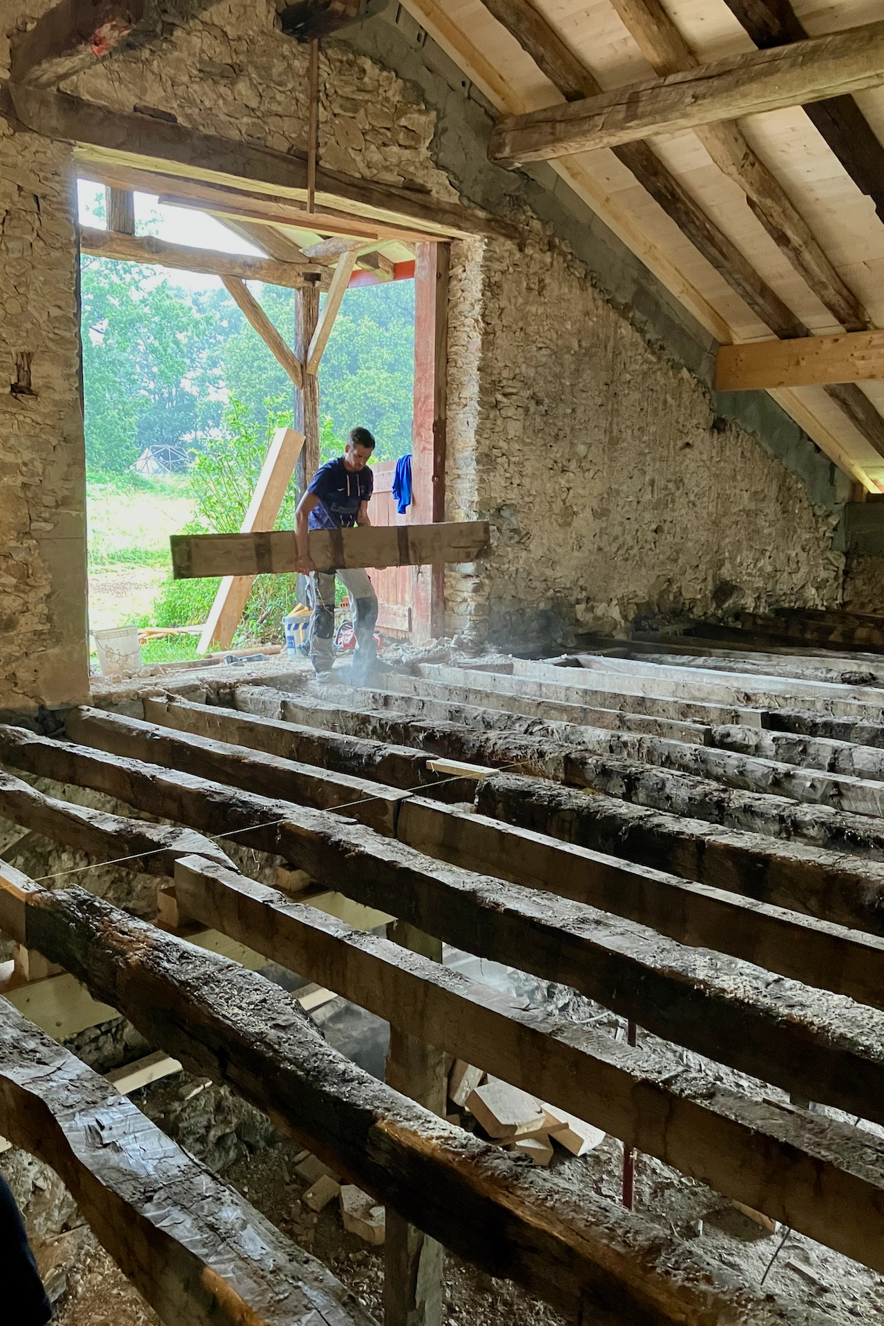 Je voulais la restaurer en préservant son intégrité et en utilisant des procédés traditionnels, conserver les volumes et la disposition intérieure, la grande entrée, l’eskaatza, la bergerie du rez-de-chaussée et l’immense grenier à foin et sa charpente exceptionnelle. Pour que les visiteurs puissent découvrir ce témoignage d’un savoir-faire ancien, la structure architecturale originale d’une maison basque traditionnelle. Un chantier de taille !